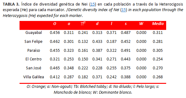 Palabras clave: diversidad, heterocigosidad, Felis catus, marcadores fenotípicos, equilibrio Hardy-Weinberg.